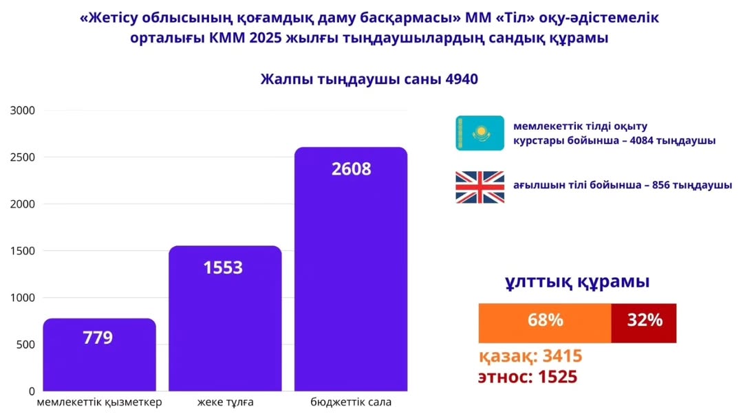 2025 жылы орталықтың тіл курстарына 4940 тыңдаушы қамтылды.
