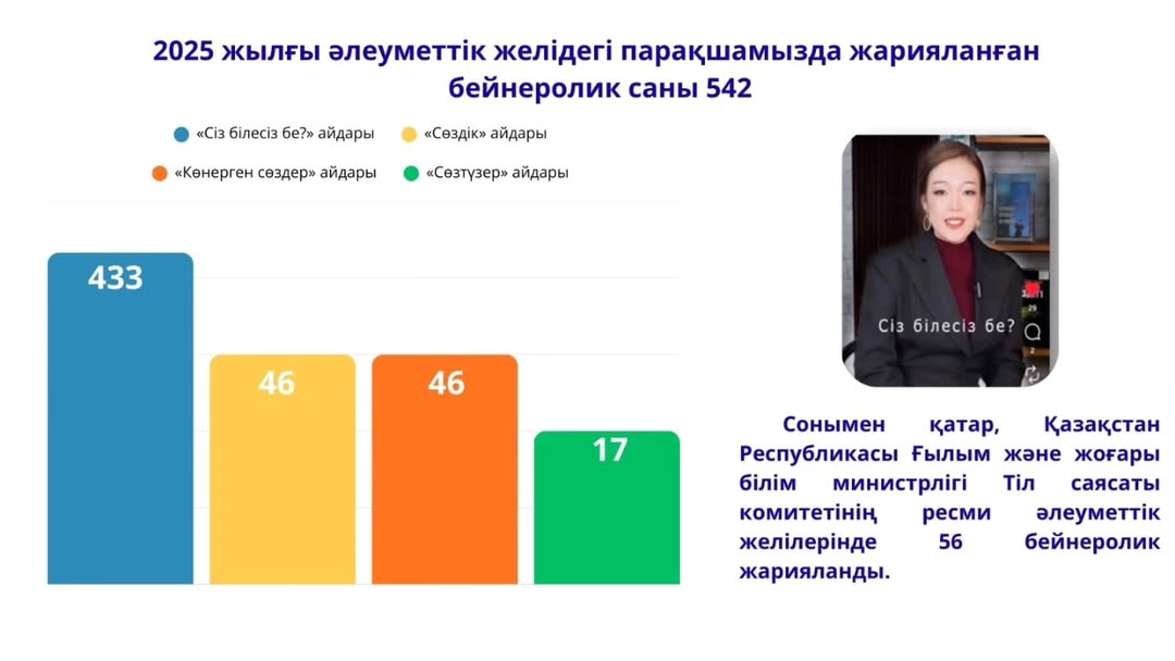 ҚР Ғылым және жоғары білім министрлігі Тіл саясаты комитетінің ресми парақшаларында – 56 бейнеролик