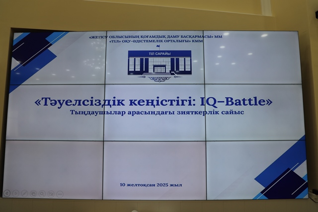 Қазақстан Республикасының Тәуелсіздік күніне орай 10 желтоқсан 2025 жылы Жетісу облысының «Тіл» оқу-әдістемелік орталығы «Тәуелсіздік кеңістігі: IQ – Battle» атты тыңдаушылар арасындағы жылдамдық, логика, шығармашылық және зияткерлік сайысын ұйымдастырды. Шара жоғары деңгейде өтіп, қатысушылардың білімін, ойлау қабілетін және топтық жұмыс дағдыларын айқындады.